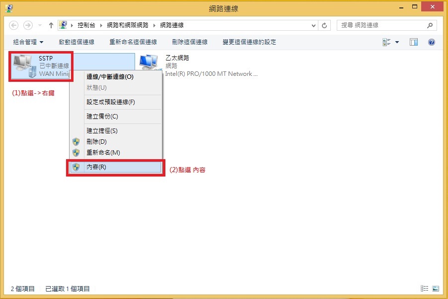 如果您的電腦使用PPTP及L2TP都無法連線時,可改用SSTP VPN連線。